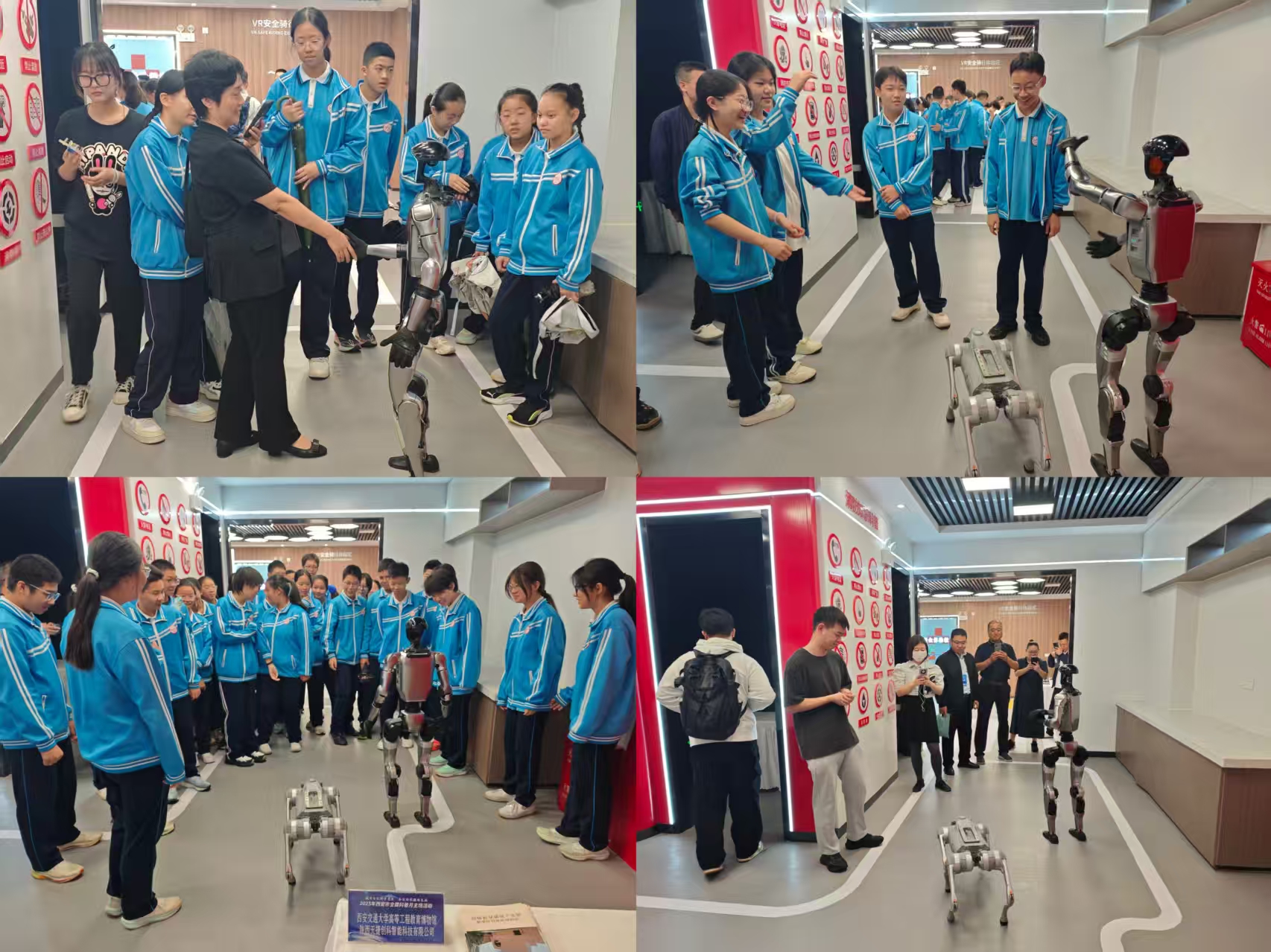 2025年西安市全国科普月活动中,高等工程教育博物馆联合陕西天捷创科智能科技有限公司互动展出人形机器人及机器狗,工作人员为在场高中生详细介绍了机器人的构成及操作原理,现场展示机器人握手、对话等互动功能,机器狗活泼可爱,机器人灵活聪慧,赢得众多观众围观、互动。